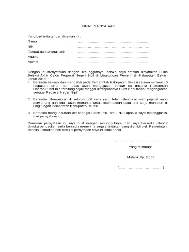 Nah, untuk lebih jelasnya, mamikos akan berikan contoh surat pernyatan cpns 2021 yang mengacu pada seleksi cpns tahun 2019. The collection that consisting of chosen picture and the best amongst others. Nah bagi anda yang sedang membutuhkan referensi tentang bagaiman cara membuat surat pernyataan cpns berikut ini kami sediakan contoh surat pernyataan cpns untuk lulusan sma di salah satu kementerian yang kebetulan di tahun 2018 ini sedang. Contoh surat domisili buat cpns ada beberapa hal yang perlu diperhatikan dalam membuat surat lamaran cpns. Pengumuman akhir lulus cpns bnpt 2019.
